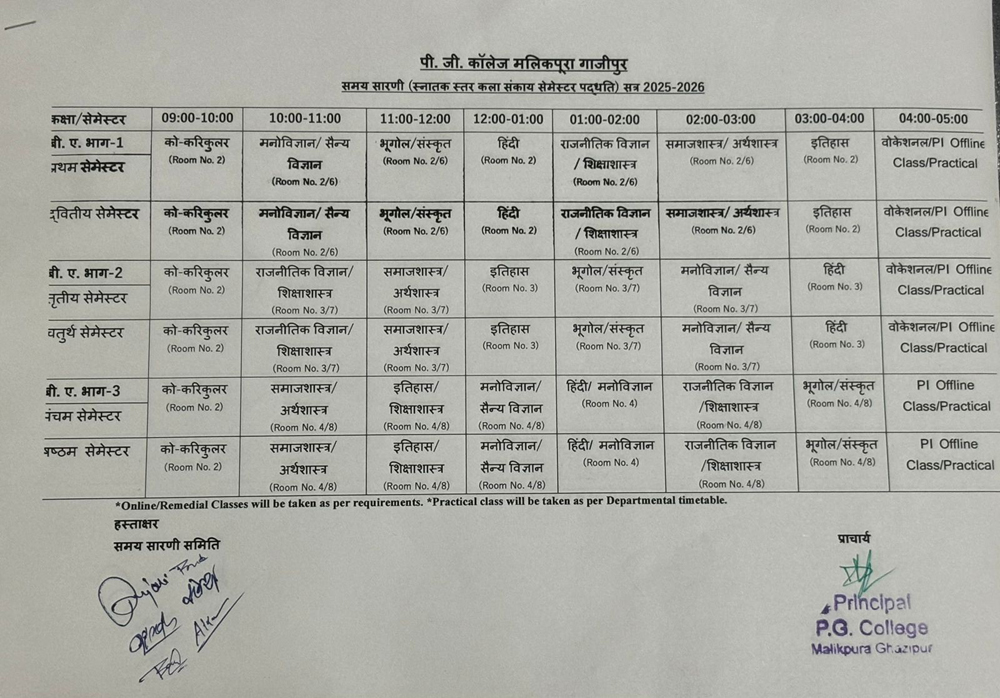 ⇒ 31-01-2026 Welcome to P.G. College, Malikpura, Ghazipur (U.P.)